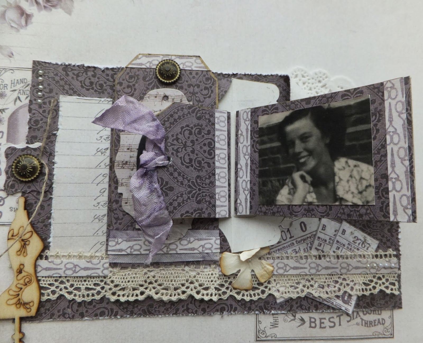 I made a little book to sit on the layout as these photographs of my mother are quite small - I have used them before in a mini book but not in a full sized layout.